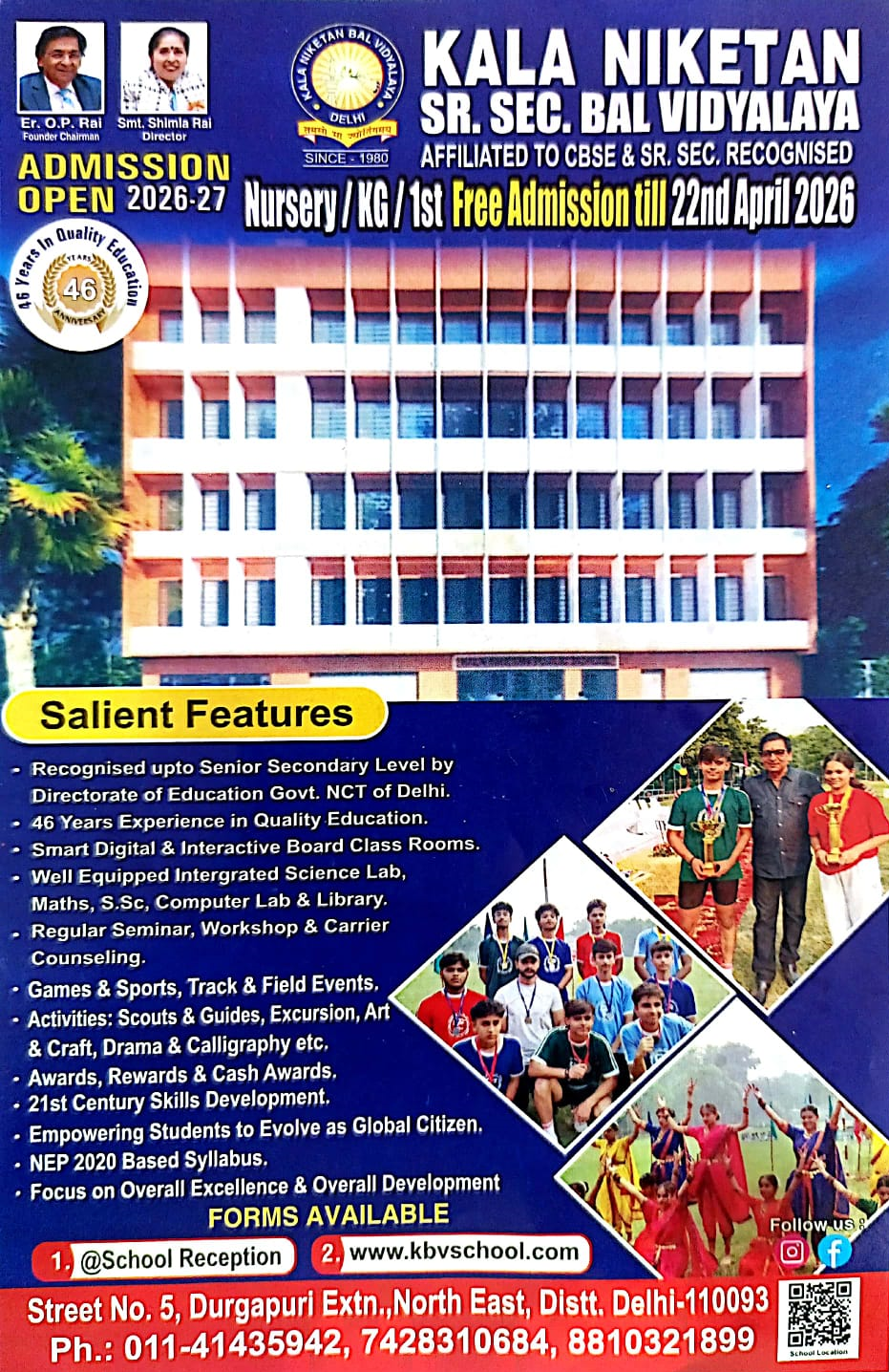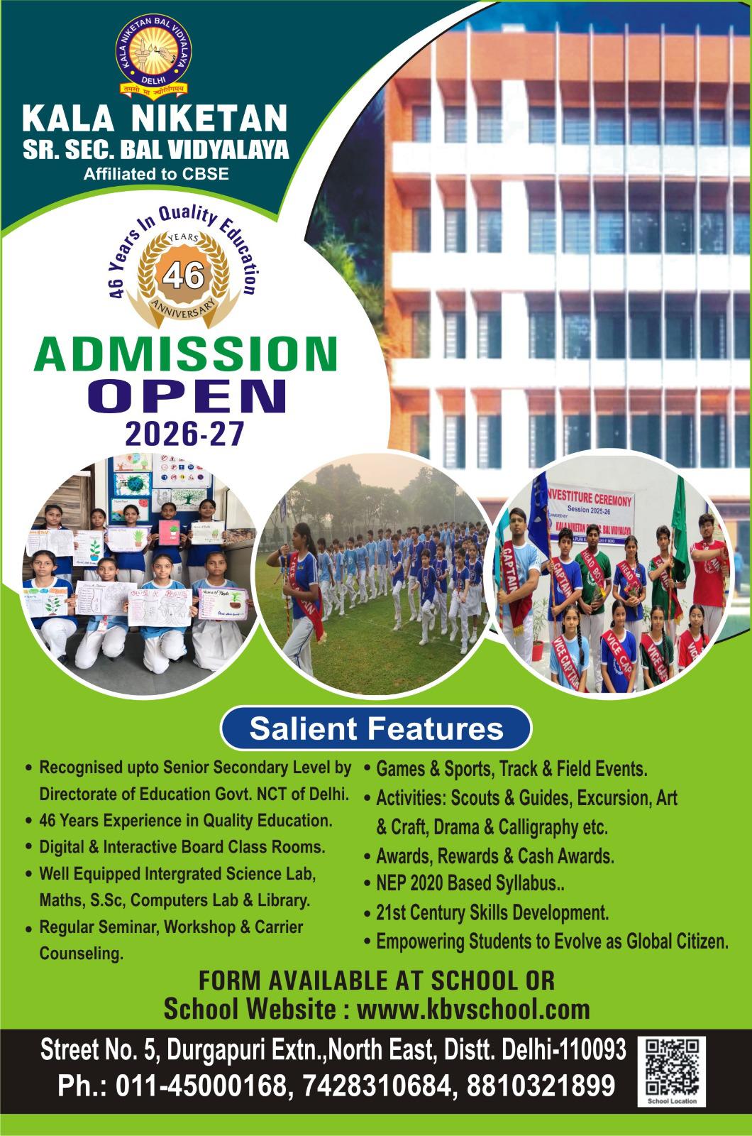 Kala Niketan Sr. Sec. Bal Vidyalaya, Affiliated to C.B.S.E Durgapuri Extn., Delhi – 110093 was established in 1980. It is run under the aegis of Shimla Education & Welfare Society (Regd.) Delhi having eminent ducationists administrative, engineers, businessmen & jurists etc. on the board of management. The School has well equipped Library, Integrated Science Lab., Computer Lab., Maths Lab, S.St. Lab. & Audio Visual Lab., etc. and facilities for Games and Sports and athletic events for over all development of the student.